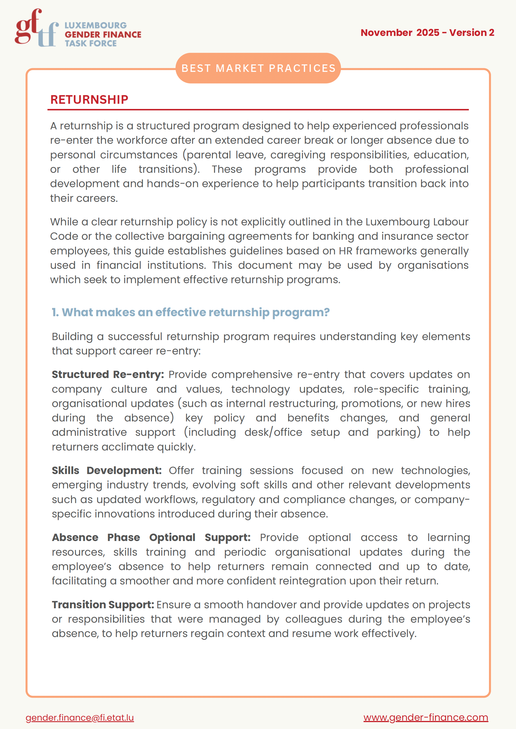 Returnship - Best Market Practices